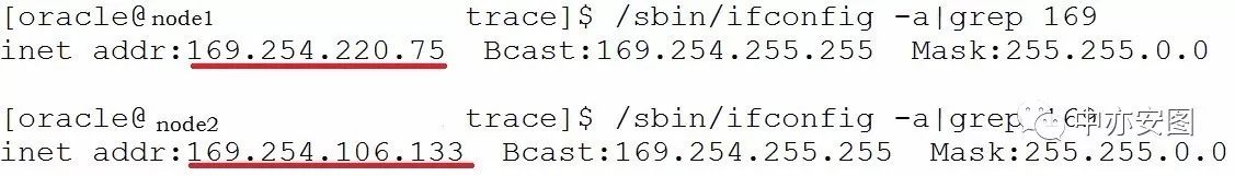 其中bond0是私网网卡,192.168是手工配置的,169.254这个IP是GRID起来后绑上去的: