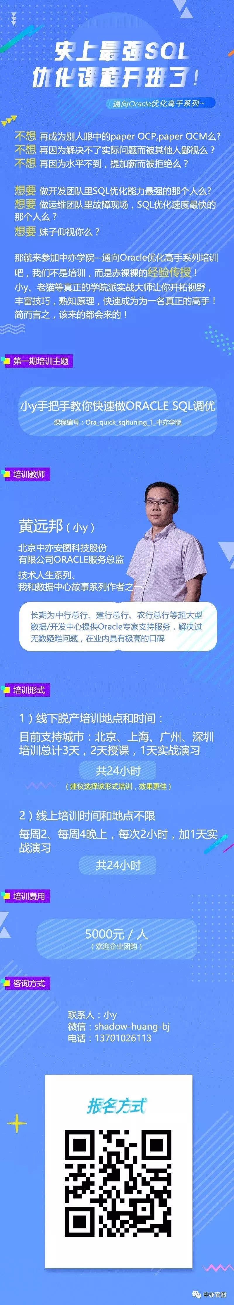 技术人生系列(每周四首发)已经出到了四十一期,期间,很多读者咨询关于Oracle数据库实战培训的事情,于是,我们开始了第一期培训,帮助大家极致地使用数据库,而不是浅尝辄止,同时提升大家的职业价值(money)…