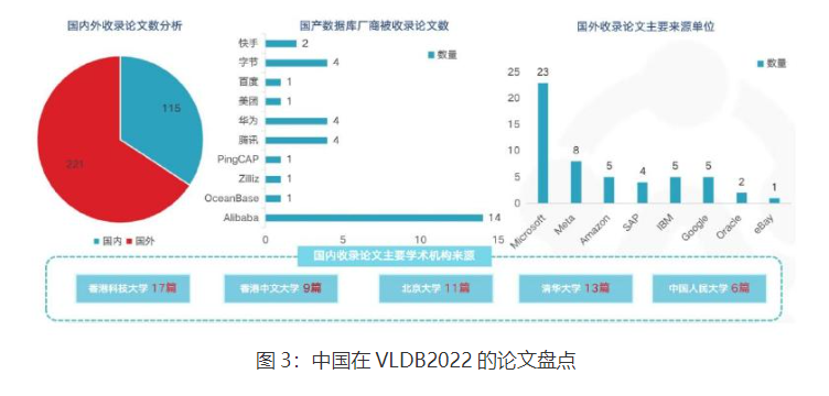 从技术方面看,中国数据库自主创新能力显著增强。目前中国数据库论文数占全球总数 12%,并呈现发文数逐年递增的趋势。(数据库论文能够展现数据库行业最新研究成果,发文数量能够一定程度上体现各发文单位在数据库学术领域、技术钻研上的成就。)阿里巴巴、华为、腾讯、蚂蚁金服等企业和清华大学、香港科技大学、北京大学、香港中文大学、香港大学、浙江大学等高校论文纷纷入选三大顶会,显示我国数据库学术水平国际影响力不断扩大。