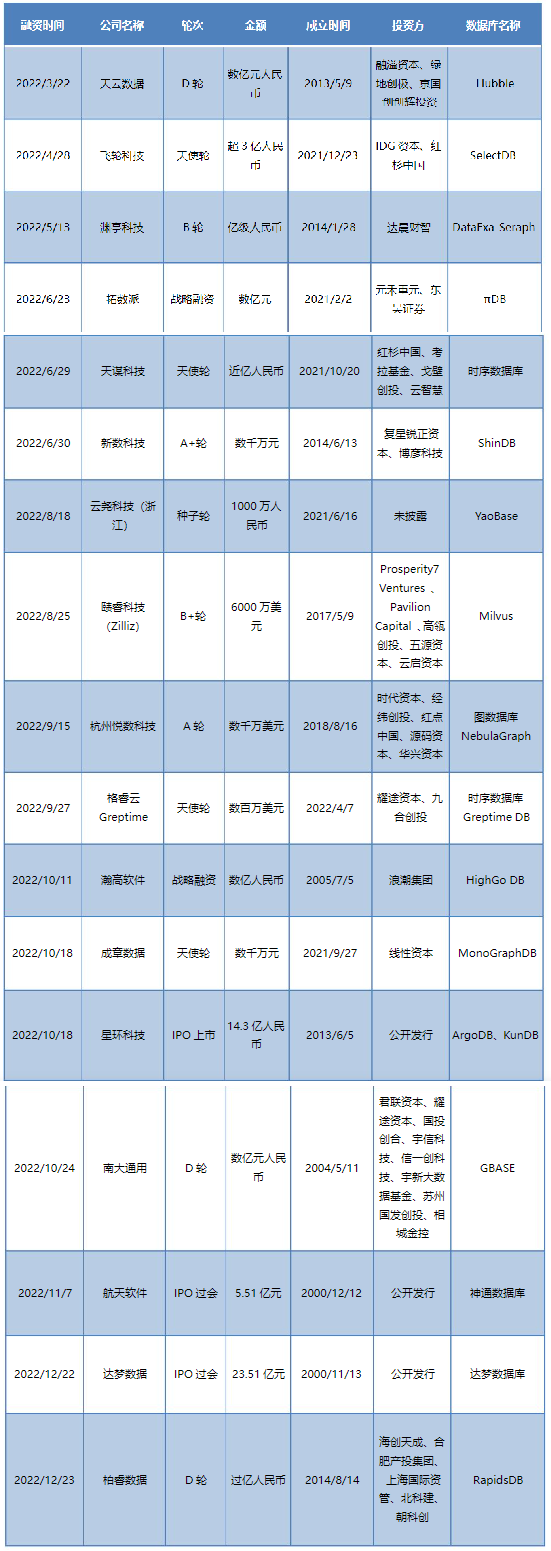 从融资环境上看,数据库产业受资本关注度较高,整体投融资环境向好。2022 年至今已有 17家国产数据库厂商和数据库生态企业获得融资,其中 2014 年后成立的新兴企业有 12 家,占比70.6%;单笔获得过亿元人民币融资的有 11 家,占比 64.7%。相比于 2021 全年融资次数,数据库企业融资次数增长 21.4%。根据披露金额,2022 年融资额度总计约为 80.92 亿元人民币,其中不乏高瓴创投、经纬中国、红杉资本等知名投资方。