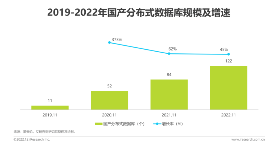 墨天轮数据社区《2022 年中国数据库行业年度分析报告》显示,目前国内数据库有着 249 款产品,单 2022 年就新增了 55 款产品,占比总数量的五分之一。目前分布式技术已成为多数国产数据库的标配,让企业应用能在容量和负载上都能轻松横向扩展,满足了当今时代和市场的需求,也是替换 Oracle 等传统集中式数据库的重要突破口。云原生数据库 34 个,云数据库成为新的竞争力焦点,阿里云、华为云、腾讯云的市场份额有显著增长。