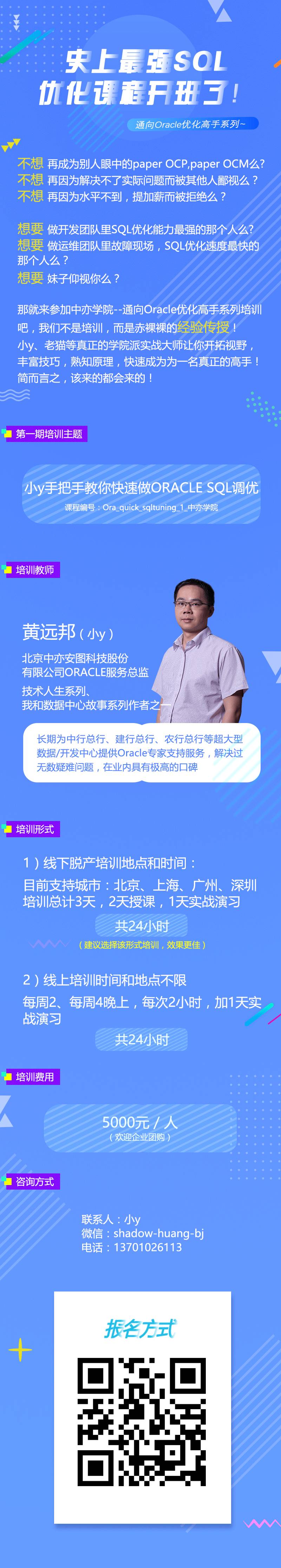 期间,很多读者咨询关于Oracle数据库实战培训的事情,于是,我们开始了第一期培训,帮助大家极致地使用数据库,而不是浅尝辄止,同时提升大家的职业价值(money)…