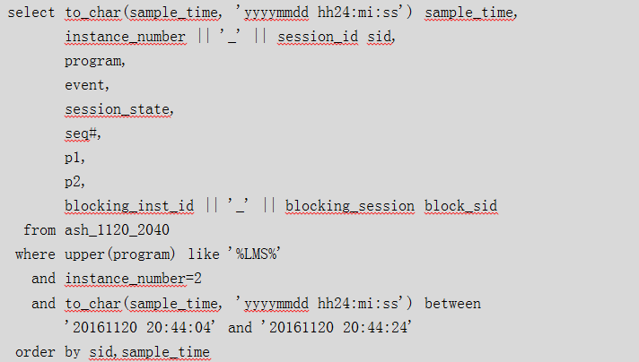 接下来,看看节点2的LGWR进程是不是在忙其他事,无暇顾及LMS进程的刷日志请求呢?发出下列查询