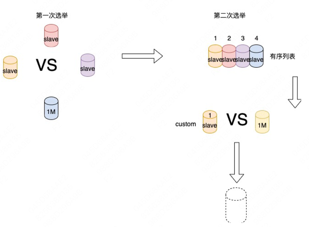 举两个例子,第一个是版本,一主五从的集群可能有三个版本,如果让最新的版本作为新主就会有问题,要尽量不让它作新主,因为如果新主的版本是最新的,但从库都是比他落后的低版本,就会出现一些兼容性问题;第二个是权重,假设其他因子都一样,但存在运维和例行维护的情况下会人为把权重降低,或标记一个实例不能作为新主,那么权重100的比权重50的有更大机会成为新主。每个选举因子都有权重,最终做综合排序,如版本、binlog格式、权重、服务器配置等,综合选举因子的选举结果是1M(first master)。