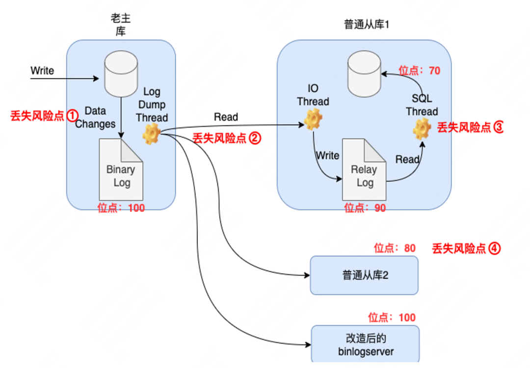问题1,可能binlog未实时落盘。 问题2,IO线程没拿到最新数据。 问题3,SQL线程没有和IO线程对齐,包括从库之间binlog位点也不一样。 问题4,从库不完整事务问题,在主库事务提交时它是完整的,但是它通过IO线程同步给从库时不是按事务粒度去同步而是按事件event粒度同步,如果事务未完整接收也可能会产生数据丢失不一致。