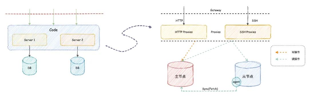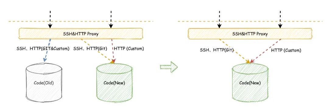 Code系统存在众多的历史代码数据和业务数据,如何有效、完整地将历史数据平滑迁移到新的分布式系统,变得尤为重要。为了达成业务使用无感知的目标,主要做了以下两件事情: