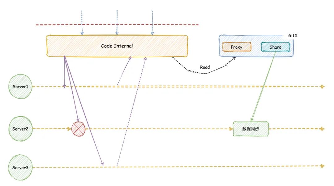 因而,单机部署无法再承载高峰期的访问量,系统扩容刻不容缓。于是,我们开始设计了一套能够通过多机负载同一仓库IO的读写分离架构方案,以解决较为严重的IO负载问题。在读写分离架构中,最重要的是要保证用户视角的数据一致性(用户随时可以读取提交的最新代码),这里采取了以下措施: