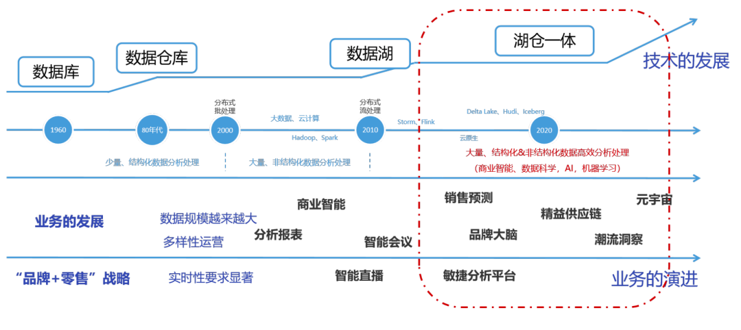 为了快速响应业务需求,构建实时数据处理能力,企业必须进行平台架构的提升,解决好海量数据的高并发和实时处理要求。但问题是为什么要构建“湖仓一体平台”?答案只有一个,那就是大数据技术不断演进的结果!