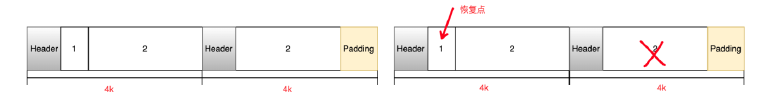用户请求边界保存在存储格式的Header结构中,使得异常恢复时能区分请求的边界,实现写请求的原子性。