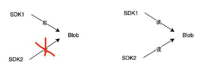 Blob支持多点读,由用户负责同步多个节点的版本。