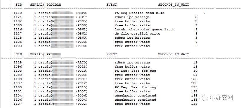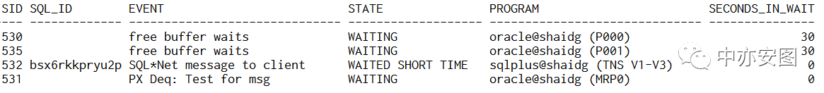 查看MRP子进程的等待事件,当出现free buffer waits时,使用oradebug suspend暂停所有的DBW进程