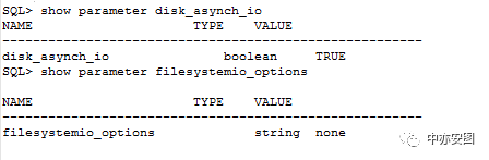 数据库中的filesystemio_options参数设置为none,看来oracle中也没有配置异步IO,这里可以将数据库中的filesystemio_options参数调整为ASYNCH;