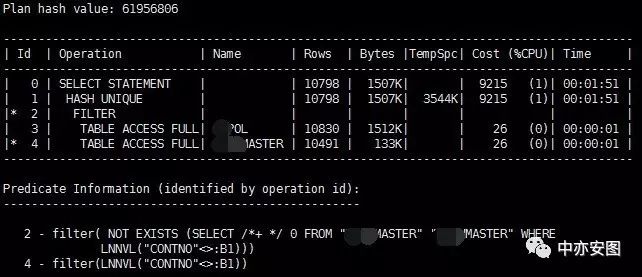 这里filter总是我们不想看到的一种情形,那么怎样给他规避这种情形呢?稍有些经验的同学看到not in 这样的语句,不免会想到oracle中另一种写法not exists;那我们这里不妨用not exists的方式来试试呢?