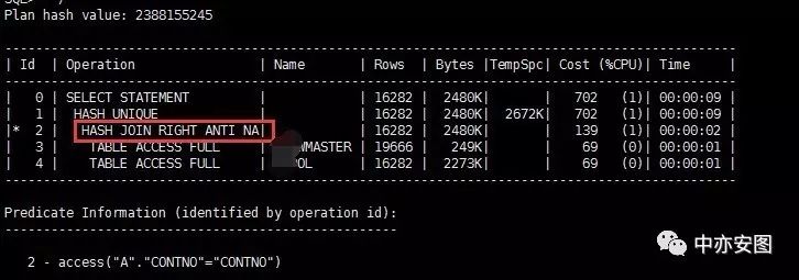 注意到,与我们10g中改写为not exists后执行计划中的"hash join right anti"不同,这里使用的连接方式叫做"hash join right anti na";什么是NA呢?实际上就是11g新功能Null aware的体现!