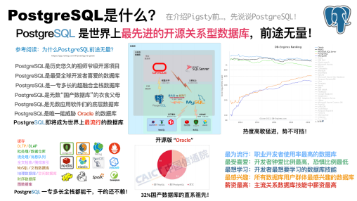 以上就是 关于 Pigsty 的介绍,我们希望这些工作能够帮助 PostgreSQL 在中国进一步推广普及,让大家都能用好 —— 世界上最先进的开源关系型数据库 PostgreSQL。