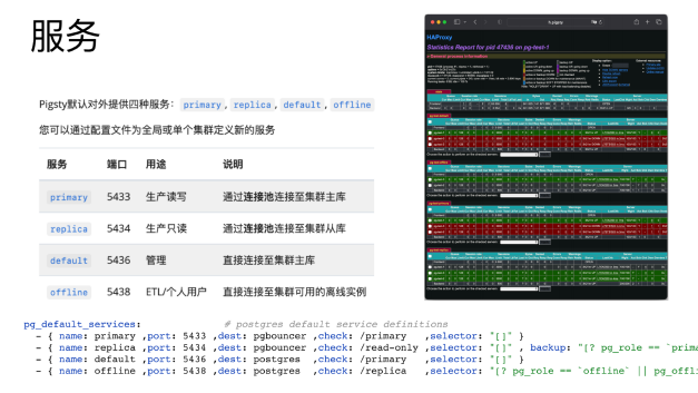 例如,读写分离是一个很常见的需求。Pigsty就通过服务的概念来满足这个需求。