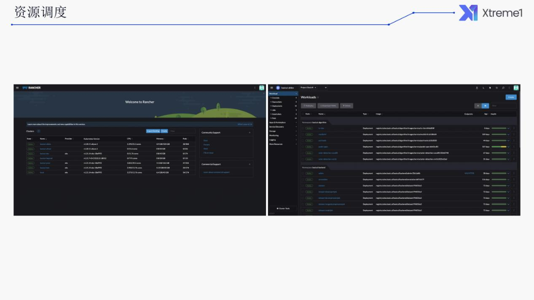 以下是我们现在系统的一张截图,可以看到有多个集群,多个 Kubernetes 集群在某个集群里面的一些工作负载的情况。