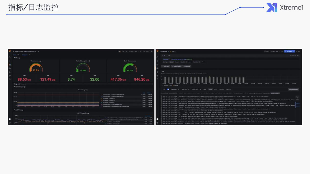 以下是目前系统大体上的一张截图。其中是 K8s 的一些监控指标,以及 local 的一些日志的展示,可以看到日志的上报的频率。近期的一些日志,可以滚动去查询、筛选、过滤。