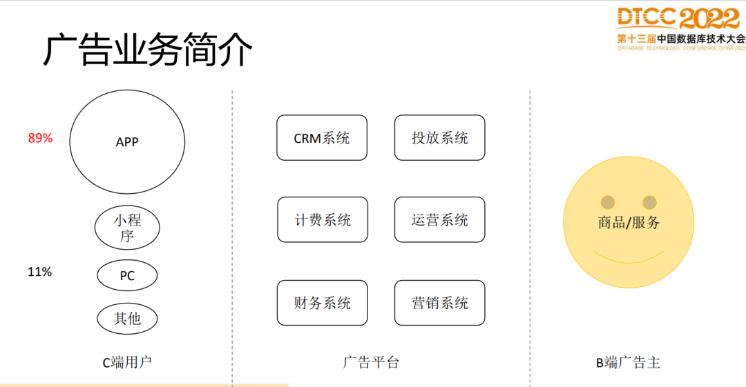 2)投放系统,把广告主的广告、素材、营销诉求投放在各个C端,之后有一些计费系统,对广告主投放的广告进行实时计费。目前,行业内比较多的是OCPX广告。