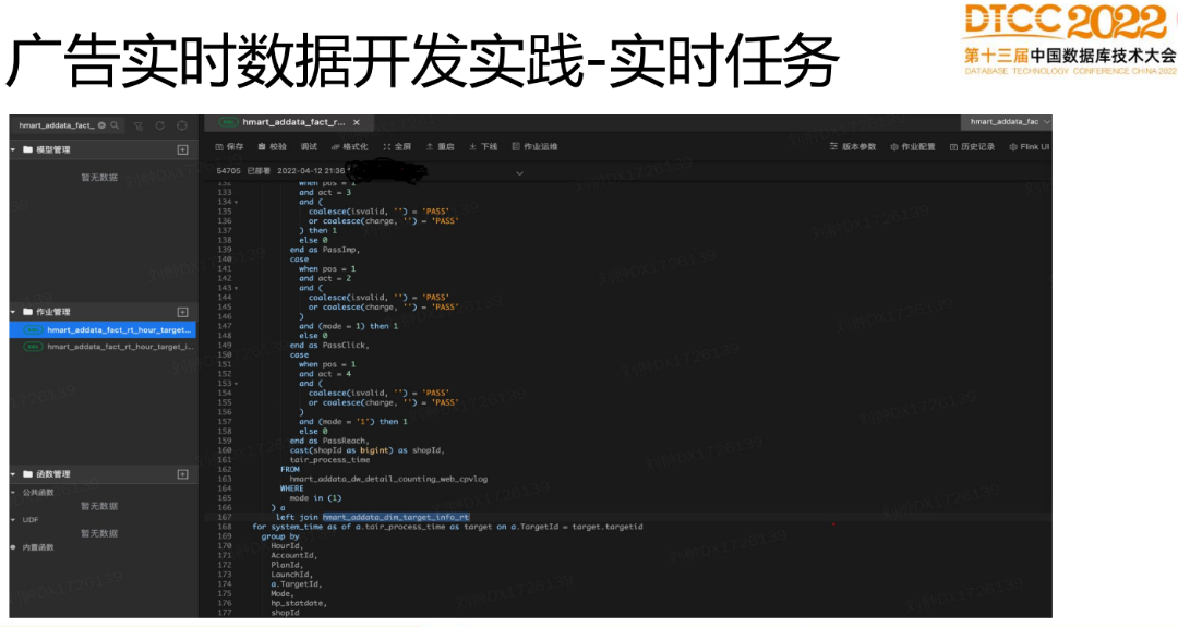 开发测试,需要实时数仓建设非常多的测试运力,来覆盖各种可能出错的场景,在上线前把一些未知问题尽量避免。尤其像广告数据,因为面向广告主,有很多实时数据需要提供给广告主,广告主投放广告之后需要知道效果,这个数据要准确,否则影响到广告主广告投放数据的优化,我们需要通过测试保证数据异常能够尽量在上线之前避免。