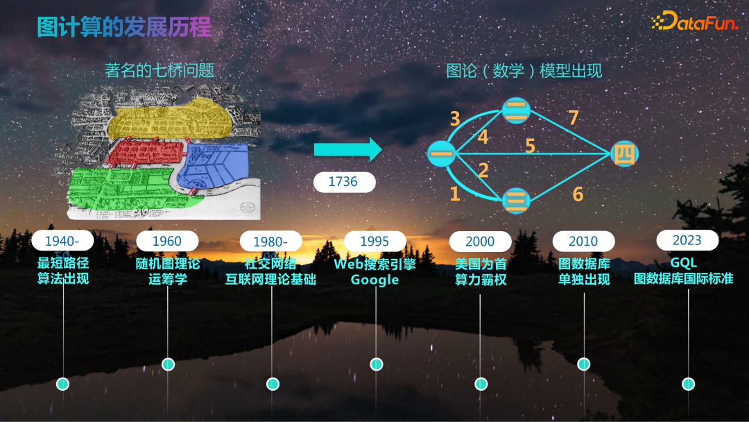 图计算的数学基础图论最早脱胎于数学家欧拉于 1836 年提出的哥尼斯堡七桥问题,到了上世纪 80 年代开始,图计算得到了快速的发展。在谷歌的 PageRank、Web2.0 社交网络分析等领域都证明了图计算的强大能力。