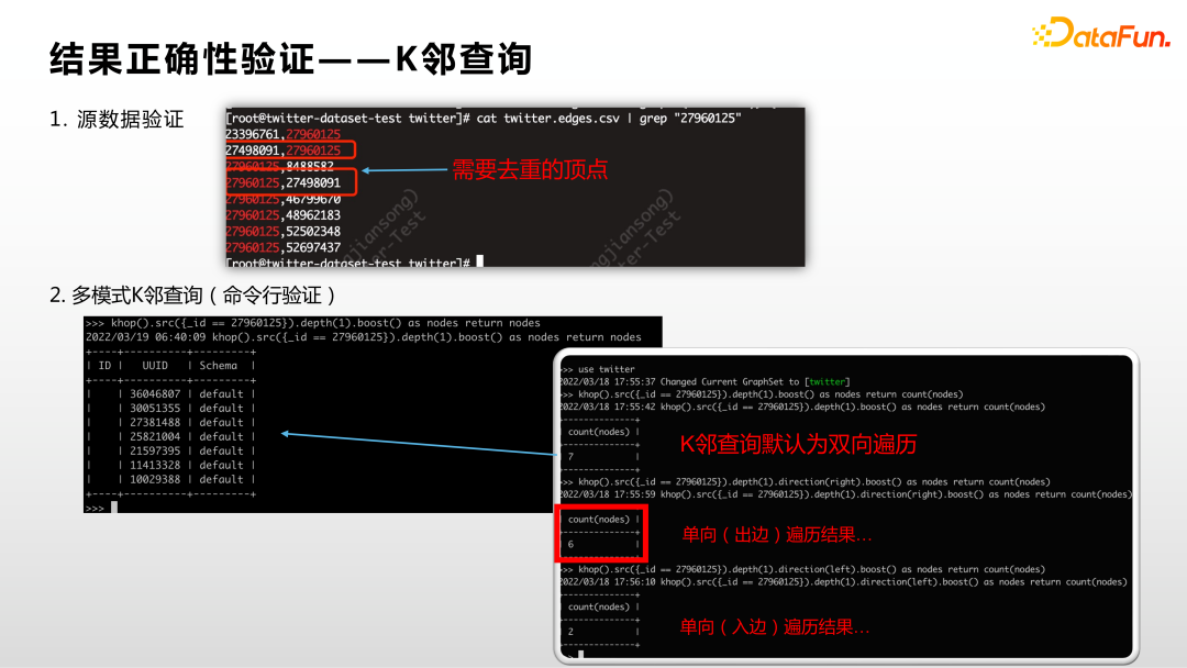 然而,图往往包含着更多复杂的结构与属性,例如:边的有向、无向;边的属性权重;K 邻是否包含 K-1 邻;如何处理计算环路,等等。这些问题会导致 K 邻的实际计算也会存在差异。