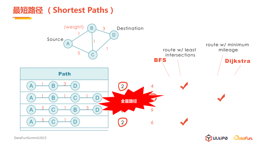 最短路径也是一个典型的 BFS 搜索,在最短路径查询中,边是否具备权重、是否是有向边,都会对最短路径的查询结果带来影响。