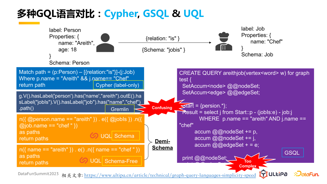 图 12:多种图查询语言之间的对比:Cypher VS. GSQL VS.UQL