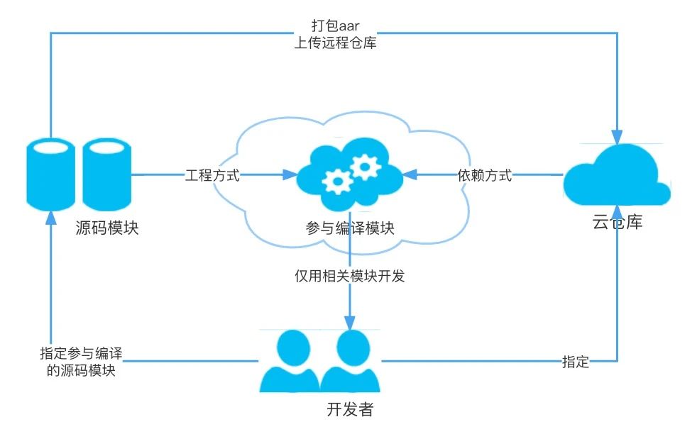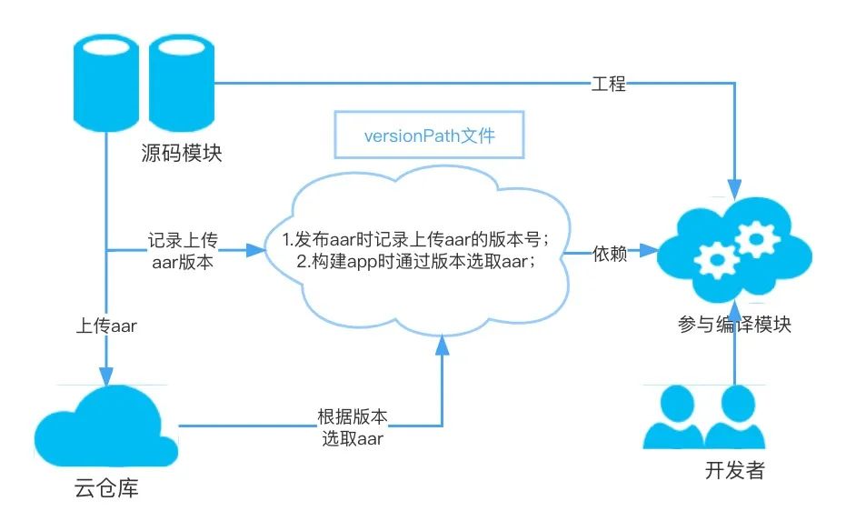 在所有子模块发布 maven 成功后,本地编译使用aar模块且环境参数没有传递 versionPath 参数时,构建脚本会自动拉取Mcd最新的versionPath.json链接作为默认的模块aar信息表。 开发阶段需切换源码/aar,可对项目中所有模块进行分类,分别为:入口模块,源码模块,aar发布模块,可移除模块。另外,合并 gradle 环境参数和local.properties参数共同作为控制参数,然后修改app_bundle.json指定模块类型以达到灵活切换的目的。例如,定义一个sourceProject参数指定哪些模块作为源码构建。 为模块之间的依赖关系建立一个json文件aar_config.json,便于查看和修改模块间依赖关系。