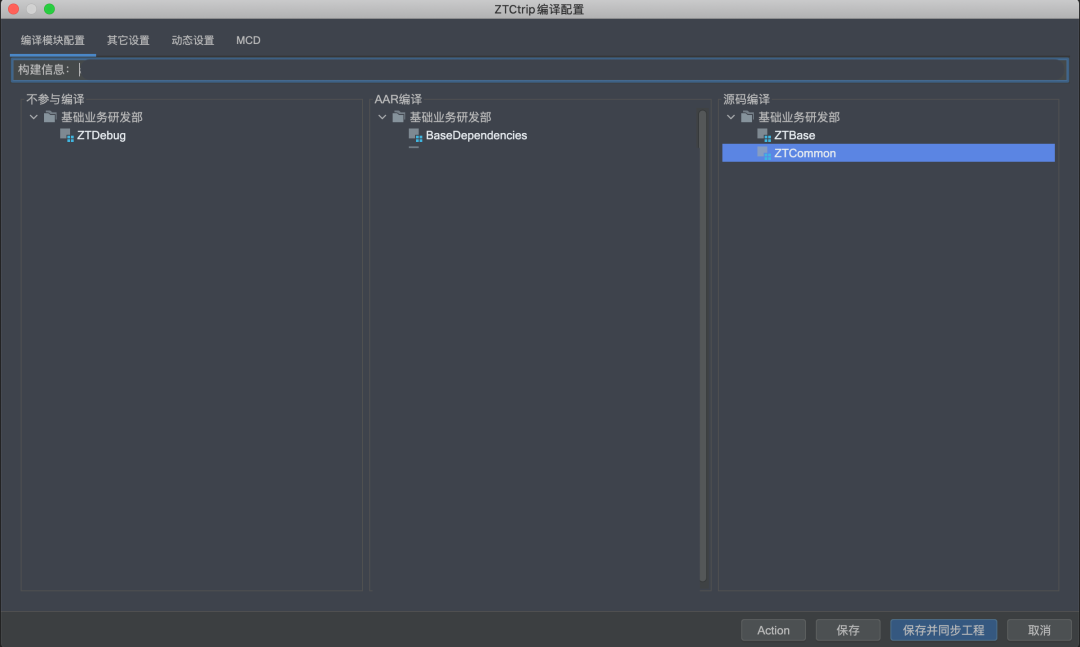 //解析初始模块信息app_bundles.jsongradle.ext.appBundles = gradle.ext.getConfigJson("$rootDir/app_bundles.json")//利用输入参数更新模块信息gradle.ext.appBundles.each { bundleName, bundleInfo ->...// App混合编译打包if (gradle.ext.sourceProjects.contains(bundleName)) {//强制指定源码编译的模块bundleInfo.buildType = 'lib'bundleInfo.include = true} else if ((!bundleInfo.required) && gradle.ext.excludeProjects.contains(bundleName)) {//指定可移除模块bundleInfo.buildType = 'lib'bundleInfo.include = false} else if (gradle.ext.versionPathConfig) {// AAR 混合编译,versionPath决定aar信息def that = gradle.ext.versionPathConfig.find { item -> bundleName == item.bundleCode }if (that) {// AAR编译的模块bundleInfo.buildType = 'aar'bundleInfo.include = truebundleInfo.versionName = that.version} else {// 其他模块bundleInfo.buildType = 'lib'bundleInfo.include = falseif (bundleInfo.required) {println("Build bundle missing,bundleName:" + bundleName)}}} else {// 纯源码编译bundleInfo.buildType = 'lib'bundleInfo.include = true}}