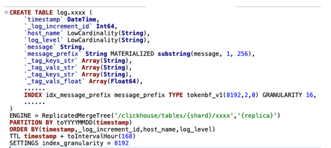 图13我们采用双 list 的方式来存储动态变化的 tags(当然最新的版本22.8,也可以用map和新特性的 json 方式)。 按天分区和时间排序,用于快速定位日志数据。 Tokenbf_v1 布隆过滤用于优化 term 查询、模糊查询。 _log_increment_id 全局唯一递增 id,用于滚动翻页和明细数据定位。 ZSTD 的数据压缩方式,节省了40%以上的存储成本。