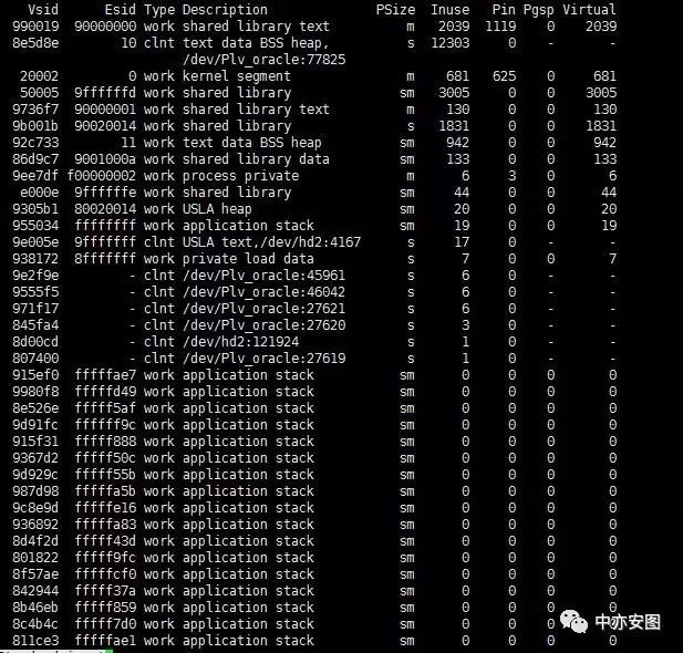 首先我们看到sqlplus进程号为19464210,我们查看该进程的内存分配情况: