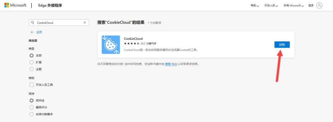 Microsoft Edge:https://microsoftedge.microsoft.com/addons/search/CookieCloudGoogle Chrome:https://chrome.google.com/webstore/search/CookieCloud?hl=zh-CN