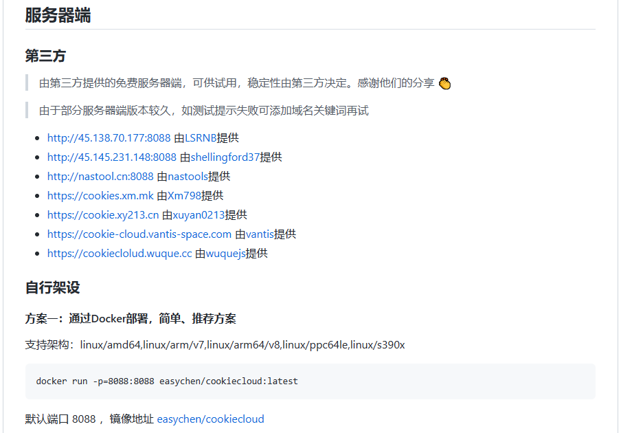 cookiecloudeasychen/cookiecloud:latesthttps://mmbiz.qpic.cn/mmbiz_png/5xFLia3A3km7GjpwNFVzqNbnoPsp6ApqSJ29oUFnic2N9KOT5oRqr89ApqXmFcvMzE010PKTicibIXmaJooeRJYaJg/0?wx_fmt=pnghttp://[IP]:[PORT:8088]