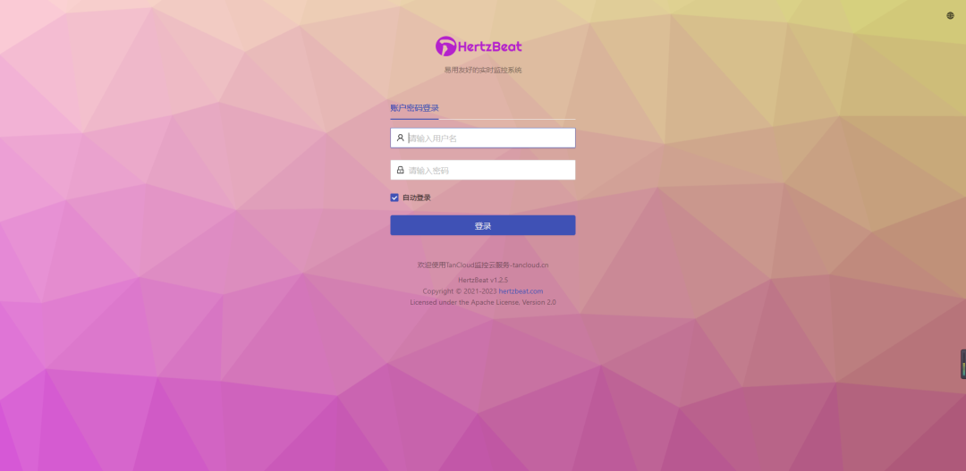 hertzbeattancloud/hertzbeat:latesthttps://mmbiz.qpic.cn/mmbiz_png/5xFLia3A3km7F2LqSwQUrBfhecQXkvtPoLdiabK24xQFkDsrm4S7WfjIibZWFkmjowJfkRcpZibGHl5Bdq2AFdJYQw/0?wx_fmt=pnghttp://[IP]:[PORT:1157]