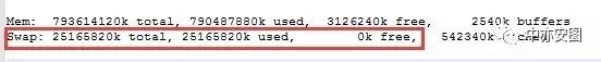可以看到swap空间也已经被完全用完了!果然内存不足才是到目前为止最深的原因!