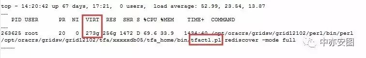 很快,我们就找到了一个TFA进程,占用了273G的内存,分析前后可以看到该进程的内存使用量是在不断上涨的;TFA是oracle 的一个诊断信息搜集工具,看起来这里可能出现内存泄露的bug。回忆前面列出的内存信息,系统的总内存有800G左右,273G虽大,但是对整体来说,应该还可以接受;这里,我们不妨再看看Exadata计算节点的配置,果然又有所发现: