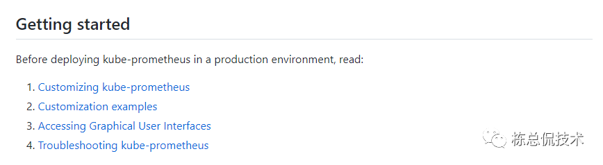 在README中特别强调在部署kube-prometheus到生产环境前,需要阅读以下内容。