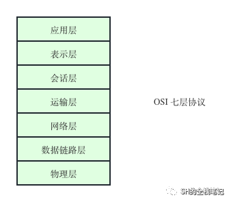 而他们的研究成果就是著名的 OSI 模型。在 OSI 模型中总共包含了 7 层(到这里是不是很多人就条件反射的开始全文背诵了),从下至上分别是:物理层、数据链路层、传输层、网络层、会话层、表示层、应用层。
