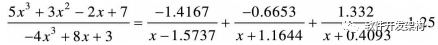 在一些特殊情况下,一个多项式需要除以另一个多项式。在MATLAB中,这是由函数deconv完成的。