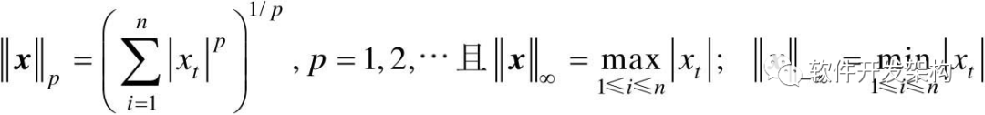 则称r(x)为向量x的范数,一般记为||x||。范数的形式多种多样,下面式子中定义的范数操作就满足以上3个条件: