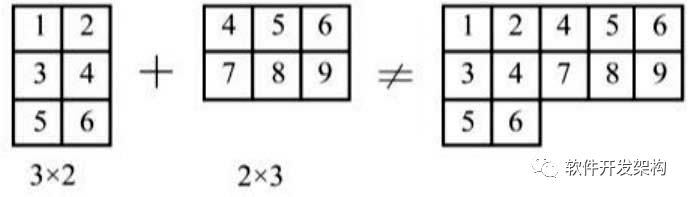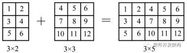 图3-1表明具有相同高度的两个矩阵可以在水平方向上合并为一个新的矩阵。而图3-2则表明不具有相同高度的两个矩阵不允许合并为一个矩阵。