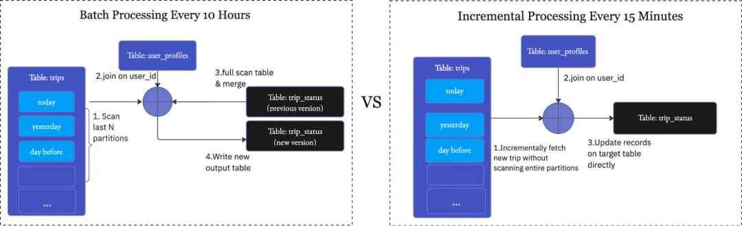现在让我们检查 Uber 的两个示例场景,其中增量数据处理可以产生重大影响。