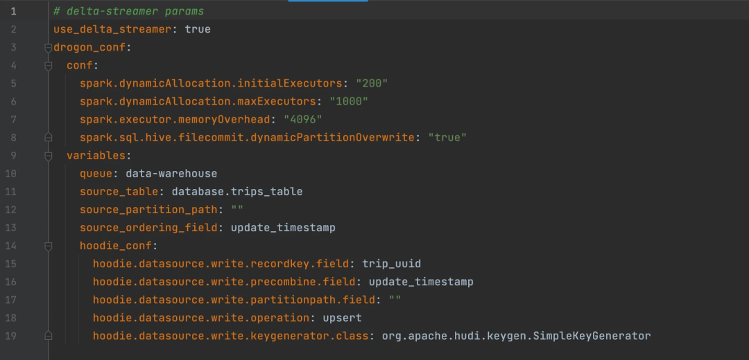 该文件将包含 Apache Spark DeltaStreamer 应用程序所期望的配置列表。在下图中可以看到 DeltaStreamer 作业中使用的示例 YAML 配置文件。