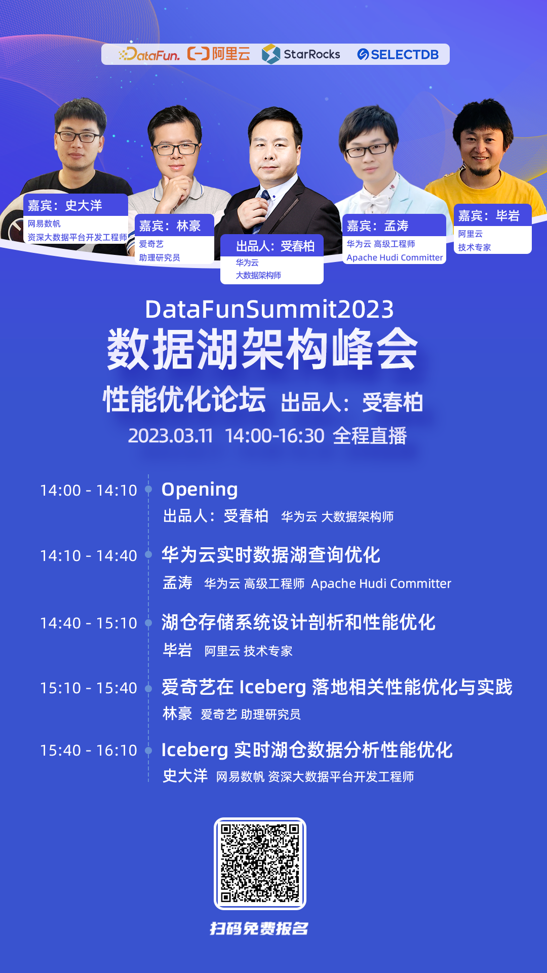 3月11日下午14:00-17:00,峰会将分为四个分论坛:核心架构、性能优化、湖仓一体、最佳实践。听众将从中了解到最前沿的技术和最佳实践经验,帮助企业了解并应用最新的数据湖技术,提高数据资产的价值。▌分论坛1:核心架构
