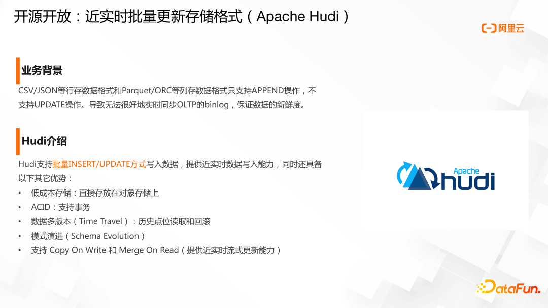 自研是打造技术深度的基础,但同时我们积极拥抱开源,满足已经生长在开源生态上的客户可以更平滑地使用湖仓版。外表类型,在 Parquet/ORC/JSON/CSV 等 Append 类型数据格式的基础上,为支持在对象存储上低成本 Lakehouse,支持了Apache Hudi,提供近实时的更新、删除能力,满足客户对低成本的诉求。02