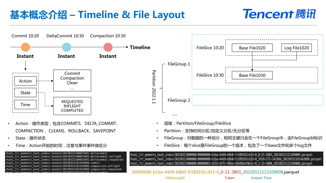 • File Layout主要由FileGroup构成,FileGroup由FileSlice组成,每个FileSlice相当于一个版本,包含一个Base文件和多个Log文件