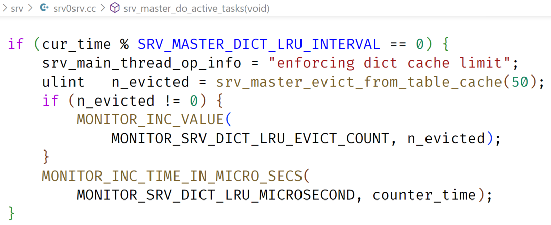 struct dict_sys_t{UT_LIST_BASE_NODE_T(dict_table_t) table_LRU;...}struct dict_table_t {table_name_t name;UT_LIST_NODE_T(dict_table_t) table_LRU;time_t update_time;...}
