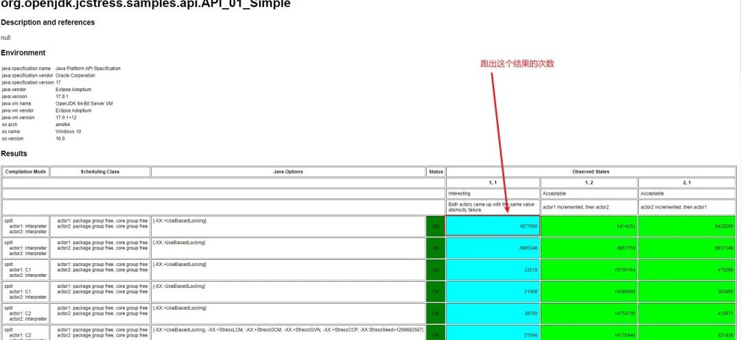 $ java -jar jcstress-samples/target/jcstress.jar -t JCStress_APISample_01_Simple