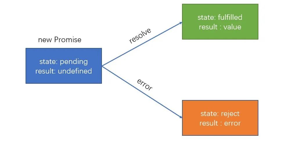 一个Promise刚创建任务未执行完毕,状态处于pending。在任务执行完毕调用resolve时,状态转为fulfilled。任务执行出现异常调用error,状态转为reject。